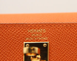 The Kelly 25 Sellier is celebrated as one of the most coveted handbags in the Hermès universe, admired for its architectural silhouette and refined craftsmanship. The Sellier construction creates crisp, sharp lines that highlight the structured beauty of Epsom leather—an exceptionally durable material known for maintaining its shape and resisting scratches. The vibrant Orange color, one of the maison’s most recognizable signatures, enhances the bag’s timeless elegance while adding a bold yet sophisticated statement.