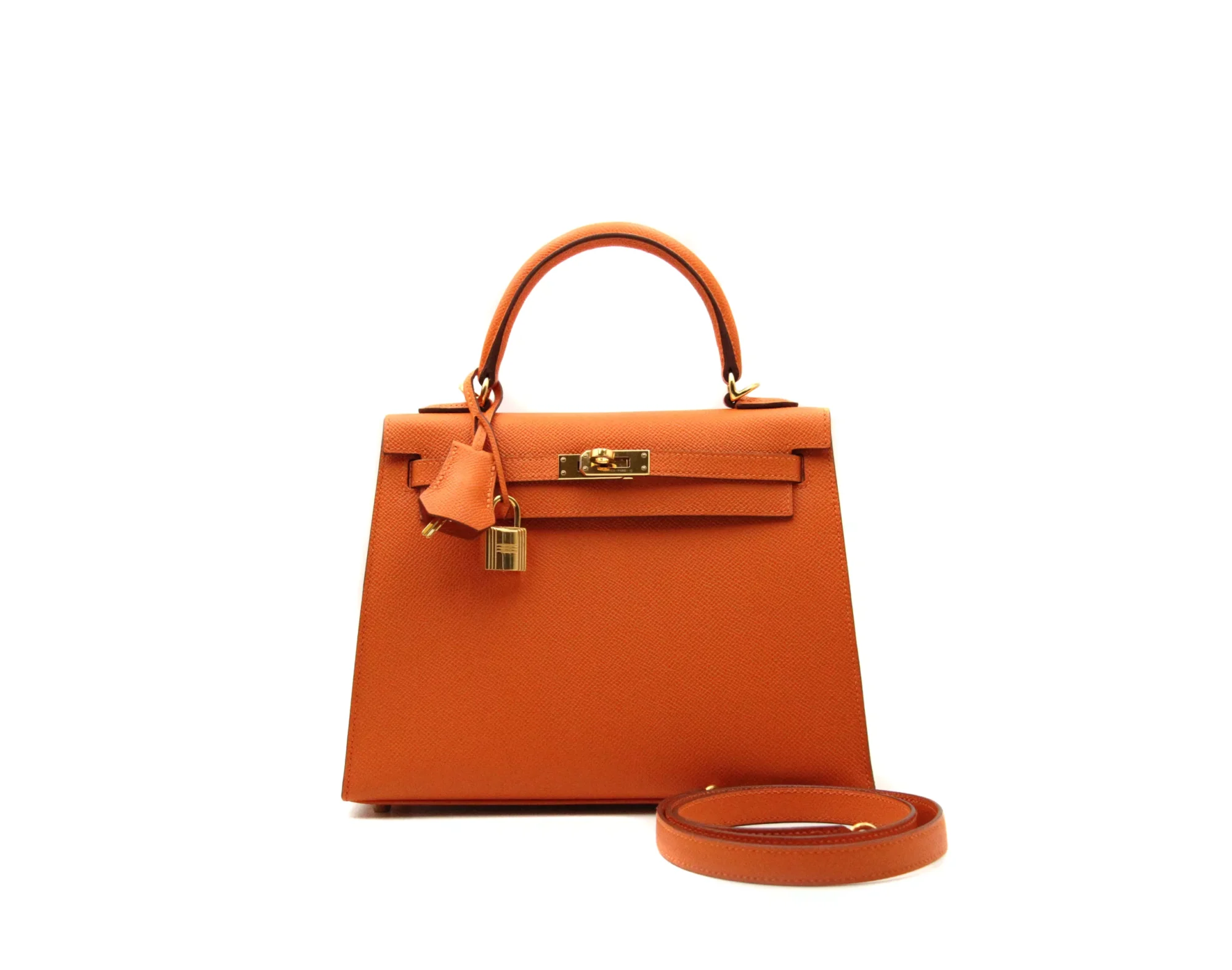 Complete with all original accessories and documentation, this Kelly 25 Orange Gold Hardware stands as a refined example of Hermès craftsmanship, combining rarity, heritage, and lasting value.
